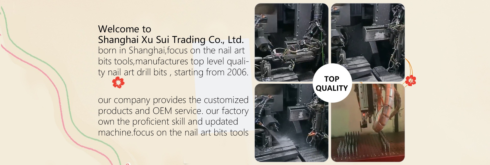Ana ürünler:Tırnak sanat makinesi, tırnak matkap uçları, tırnak sanat araçları, ayak temiz aracı, yanlış çivi